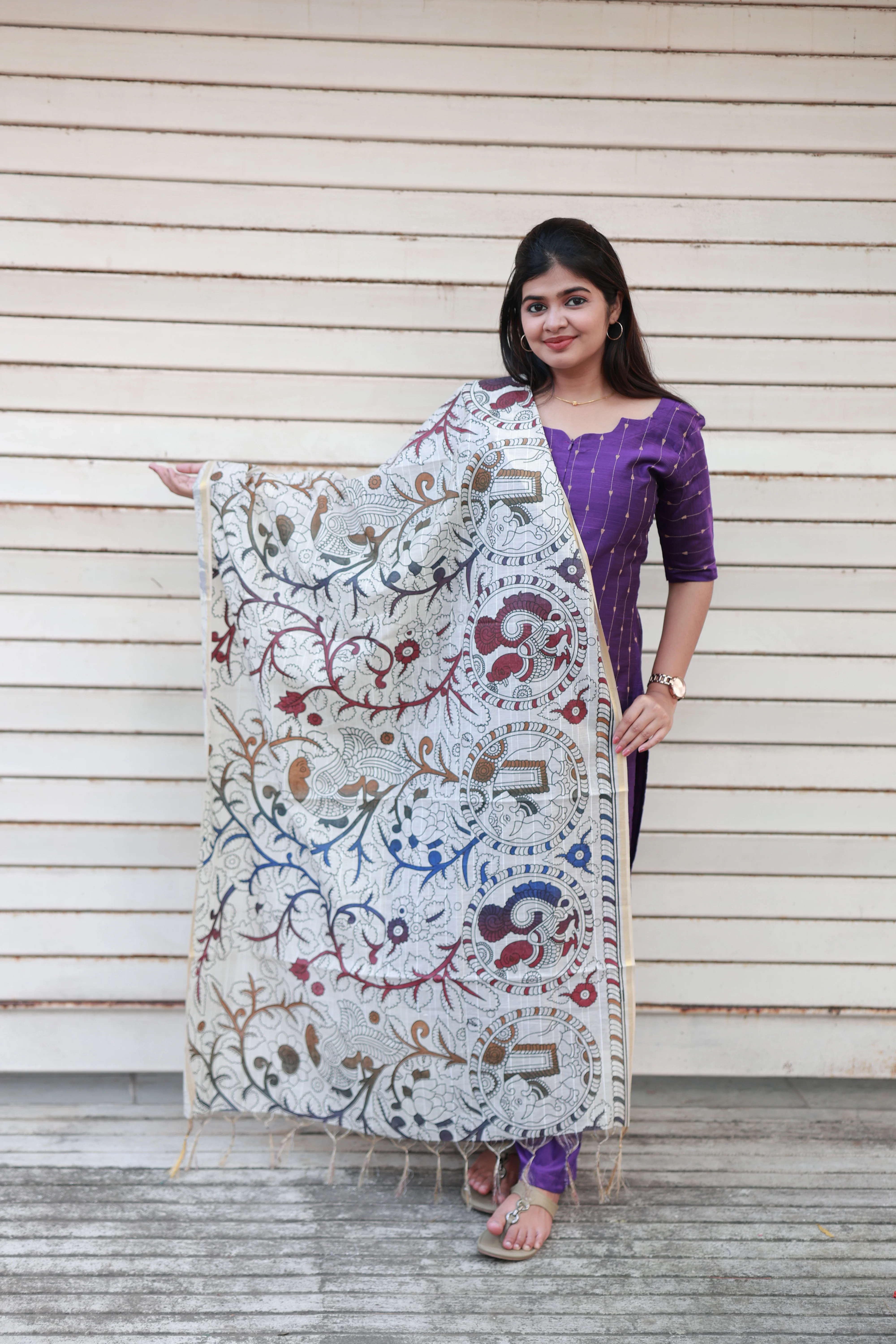 Top length 44.5 inches, bottom, and kalamkari printed dupatta